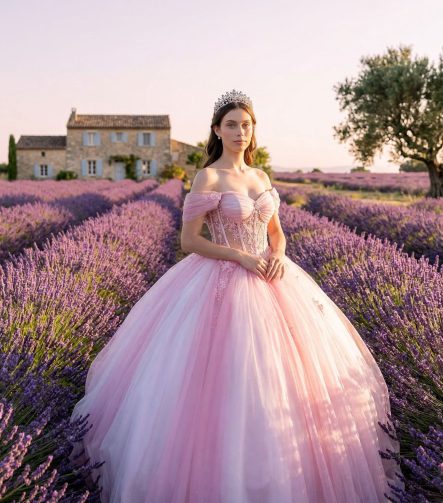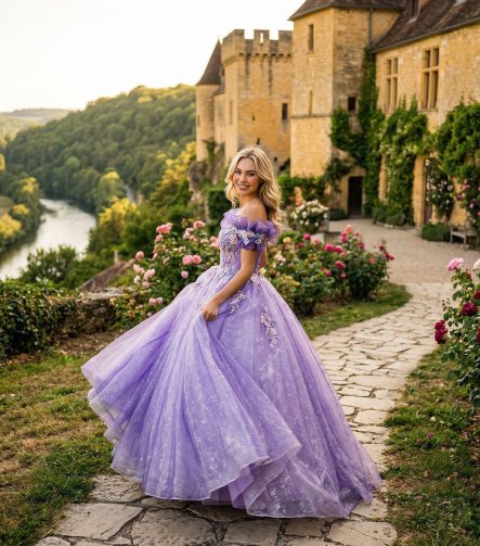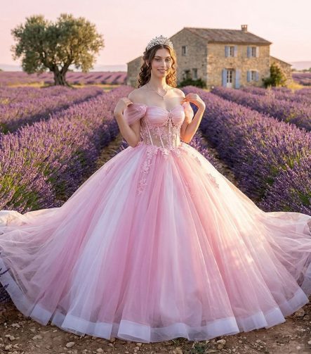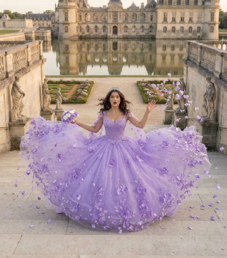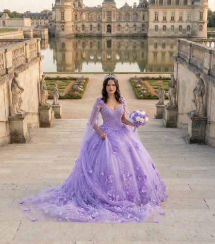 Lavender Prom Dress Quinceanera Ball Gown 3D Flower Princess Gown Cape Party Dress