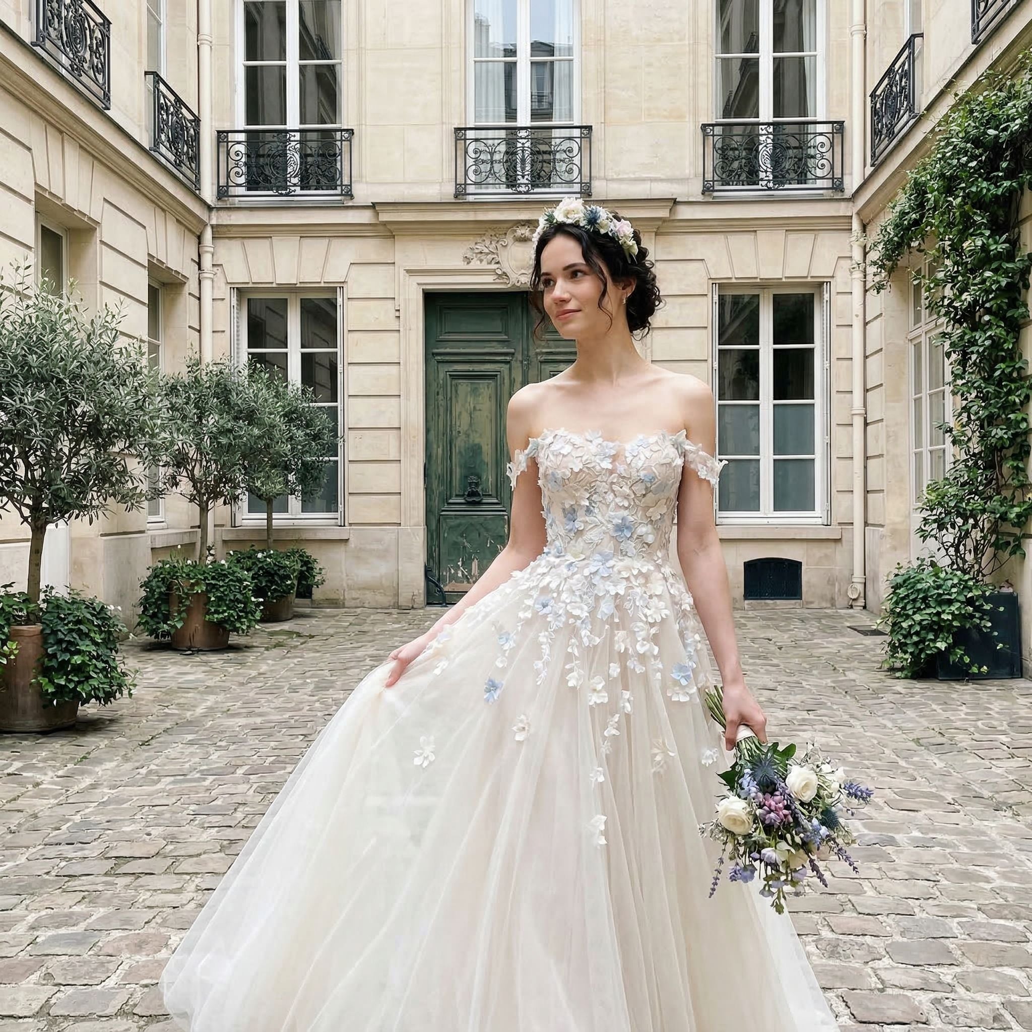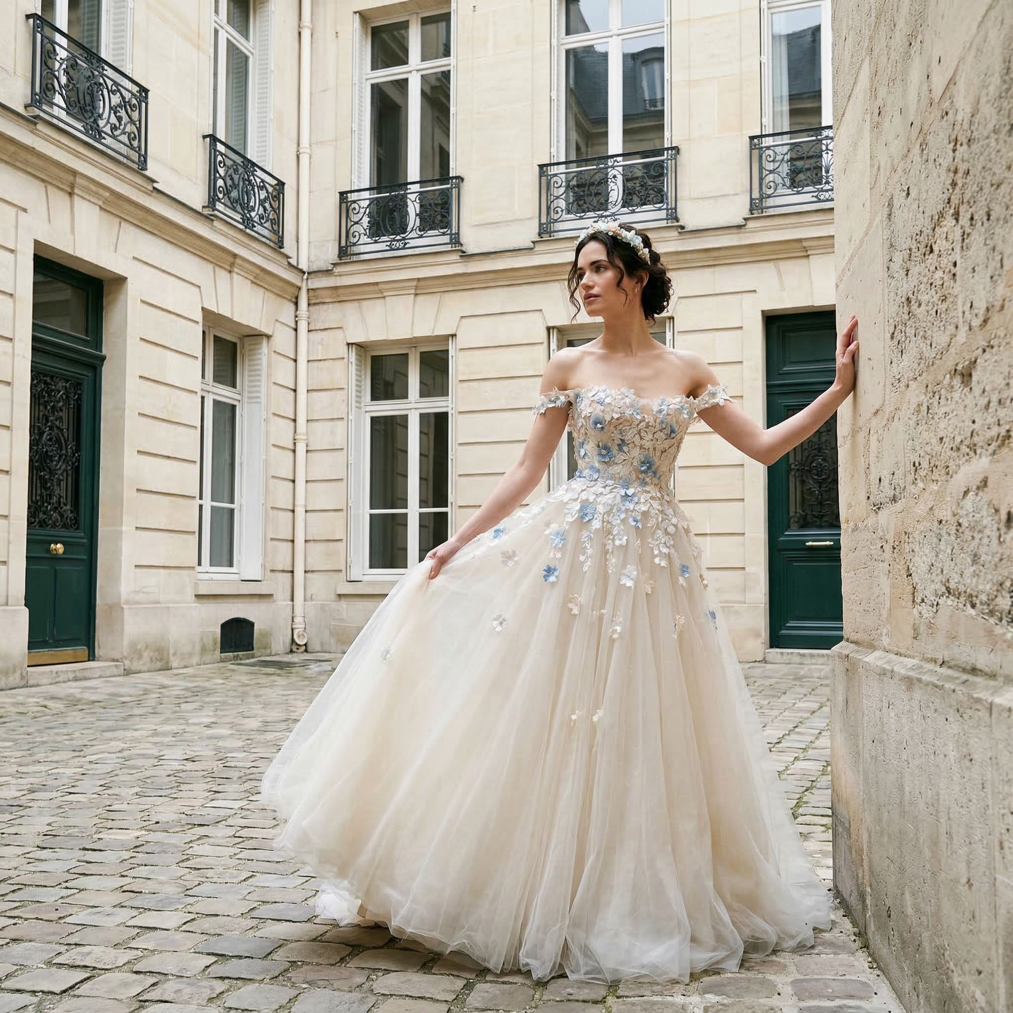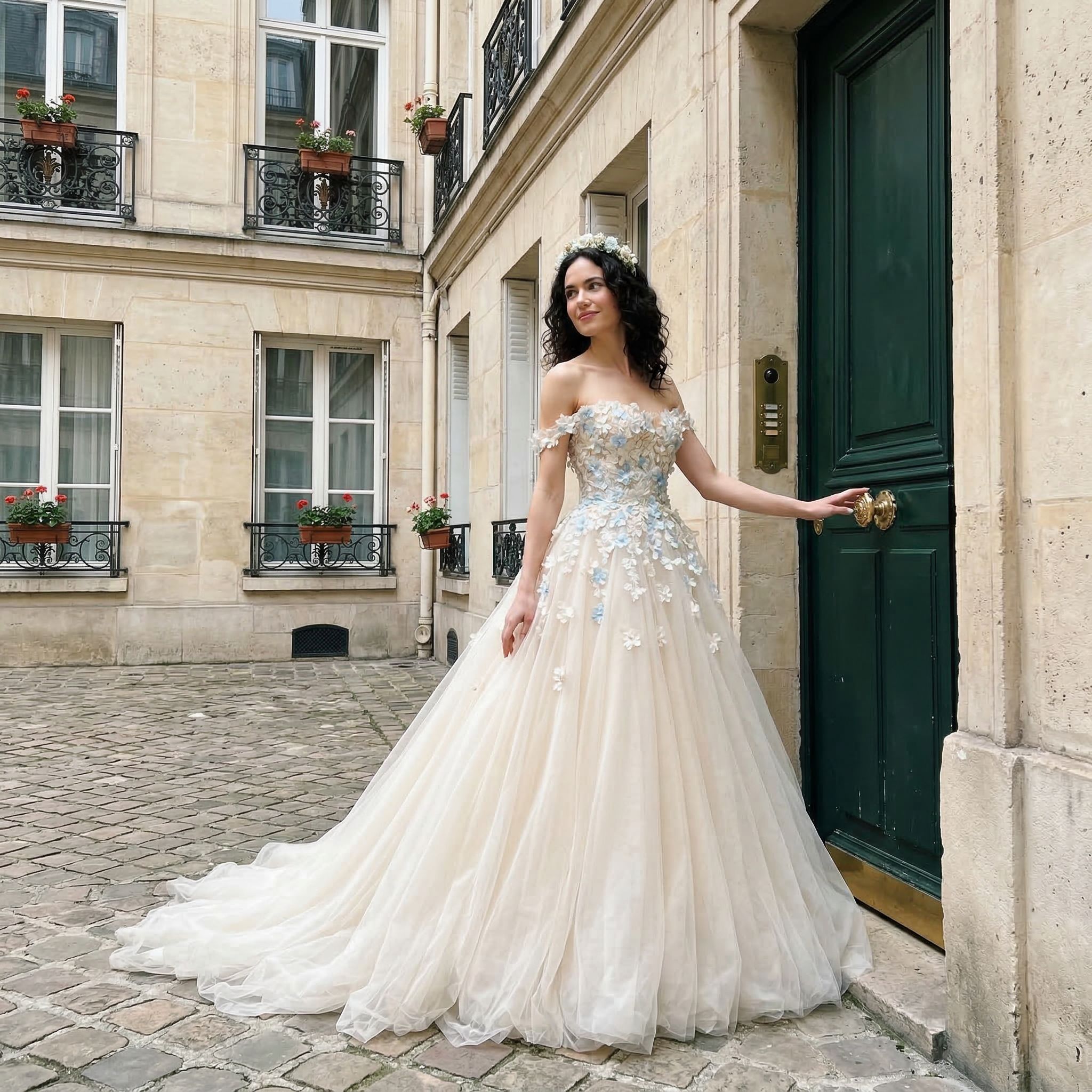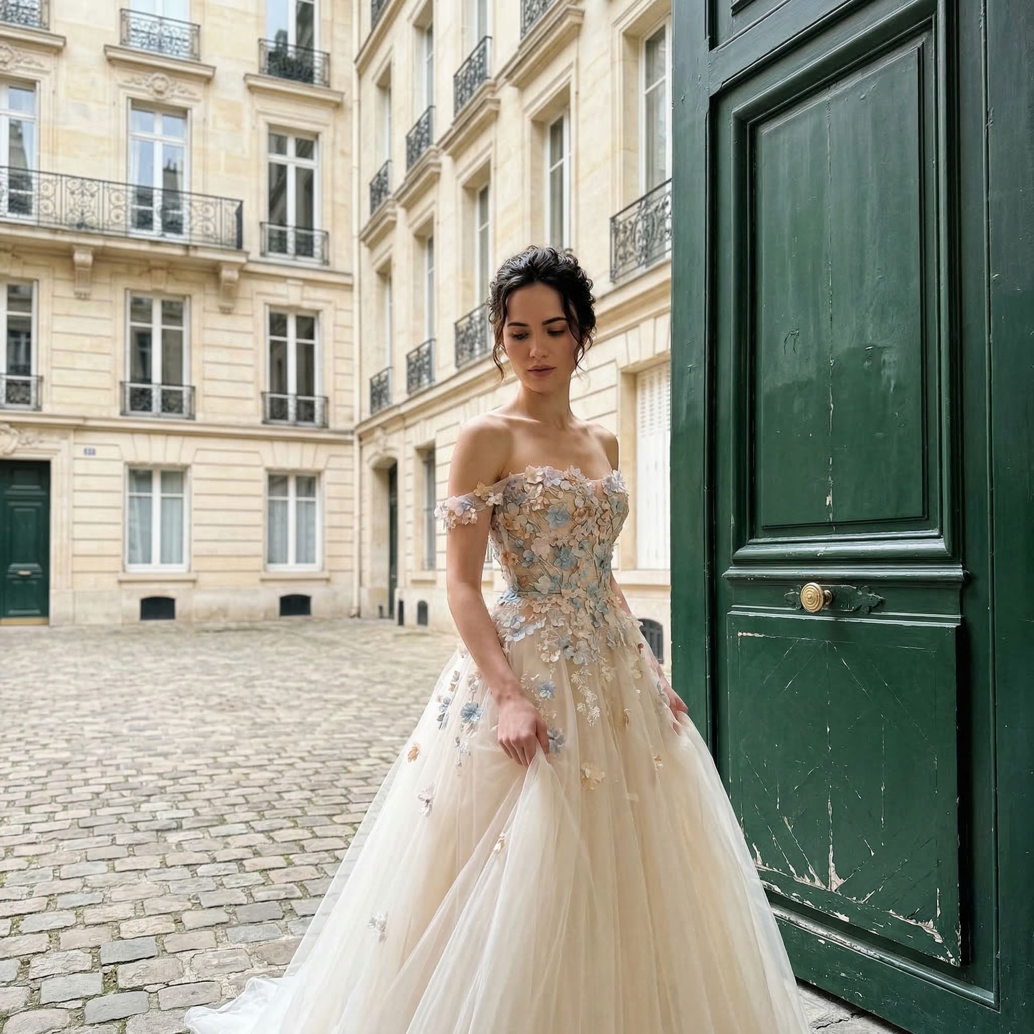 Floral Princess Prom Dress Quinceanera Fairy Gown Light Tulle Party Evening Dress