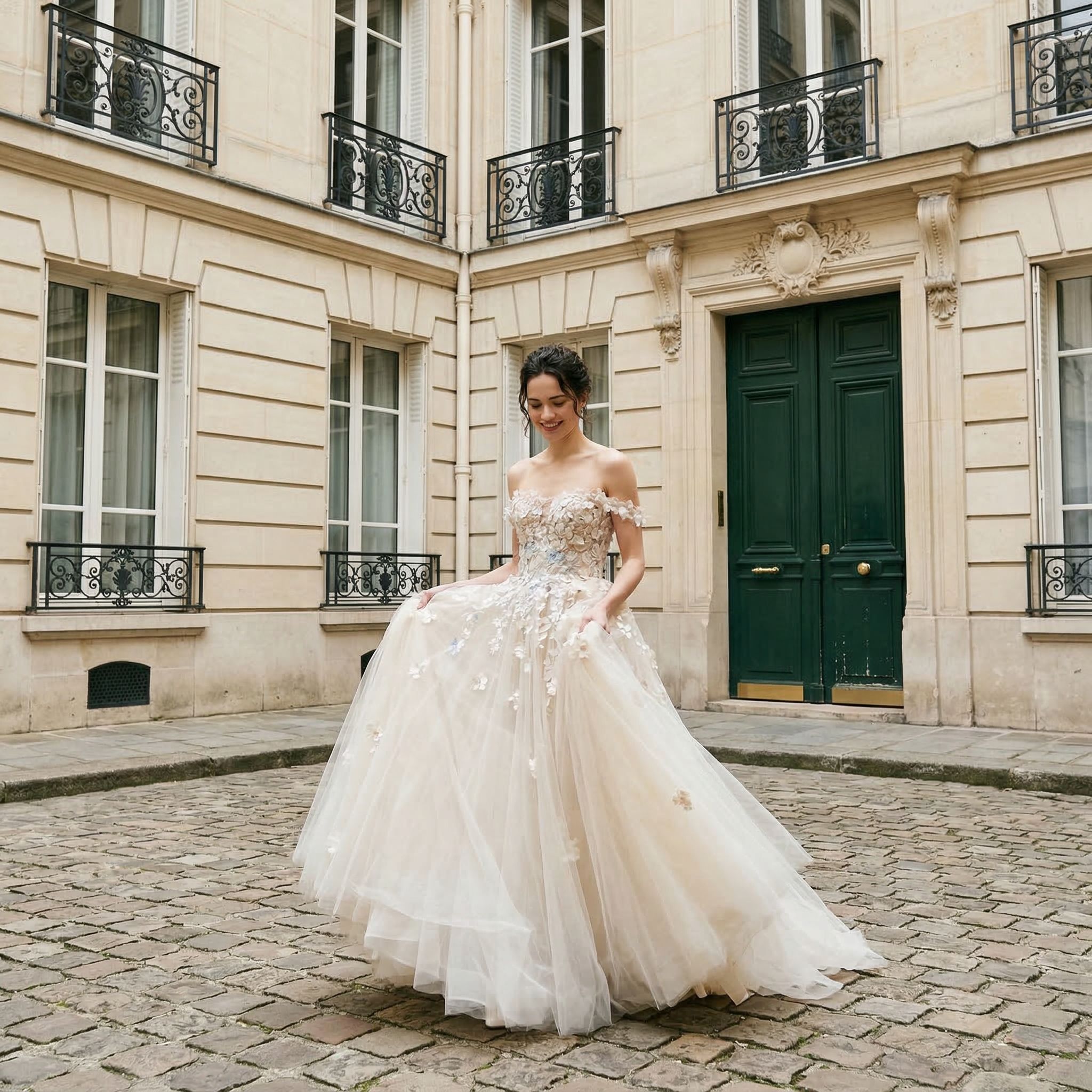 Designed for prom, quinceañera, and special occasions, this gown offers a romantic silhouette that feels both playful and refined. The lightweight tulle ensures comfort while maintaining a graceful appearance throughout the event.