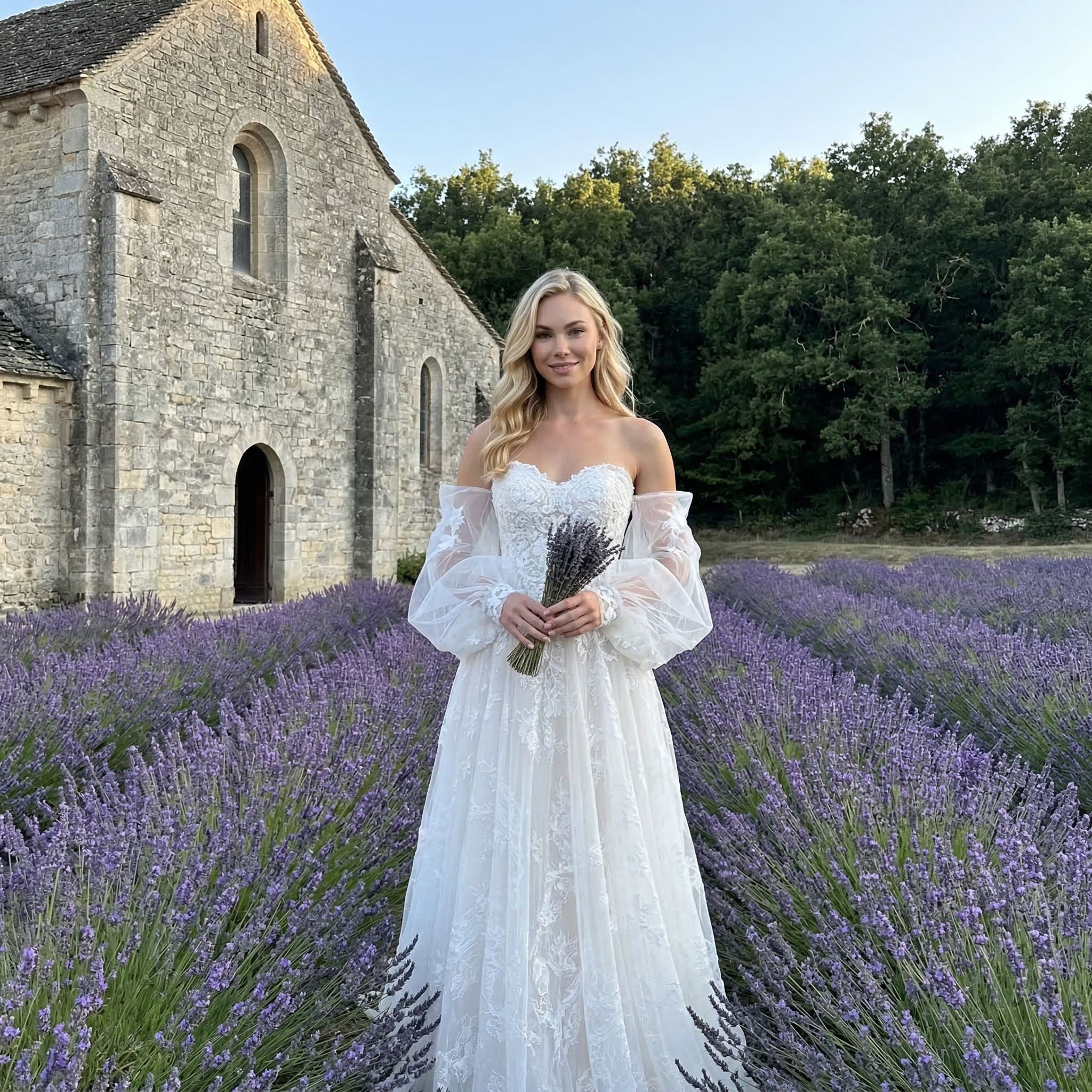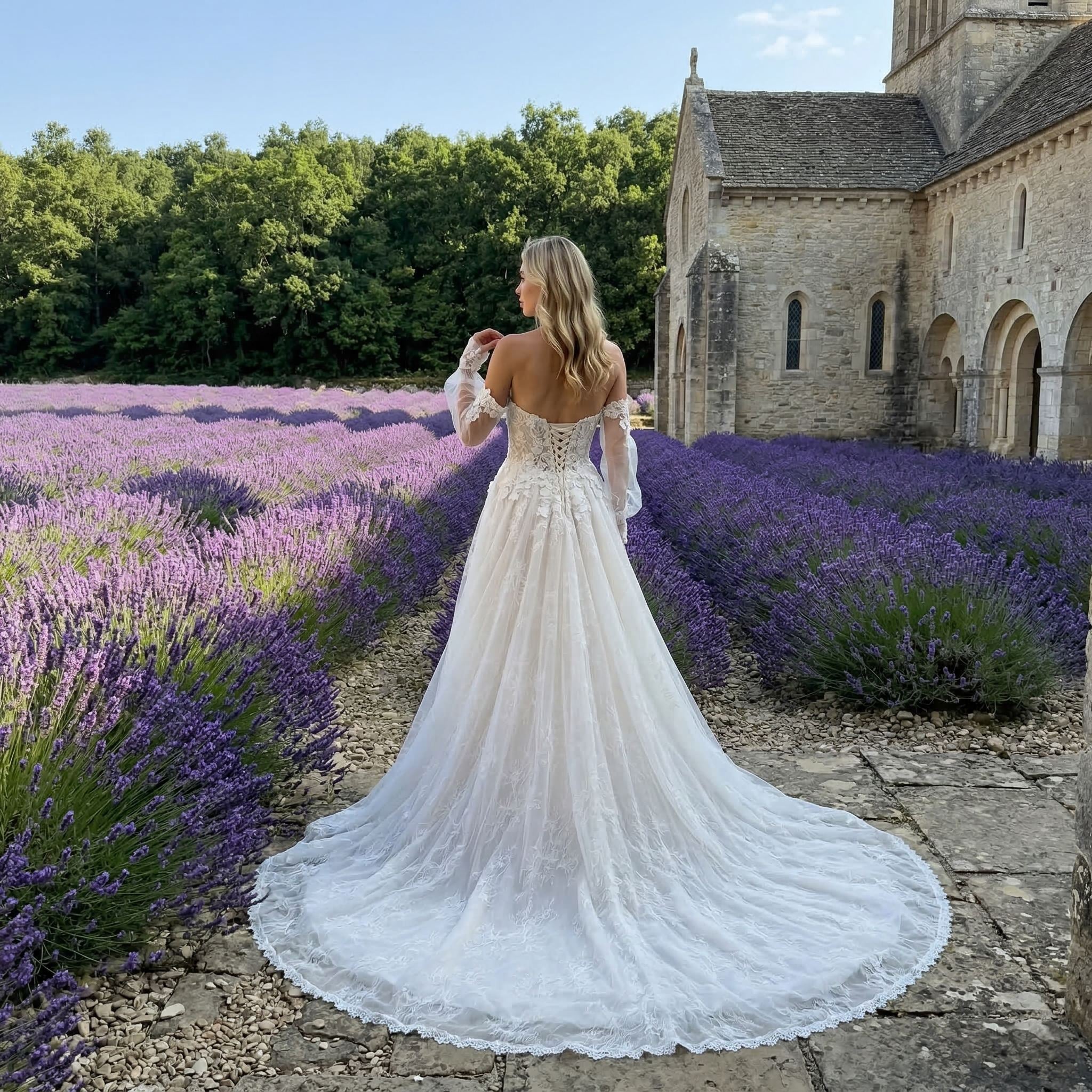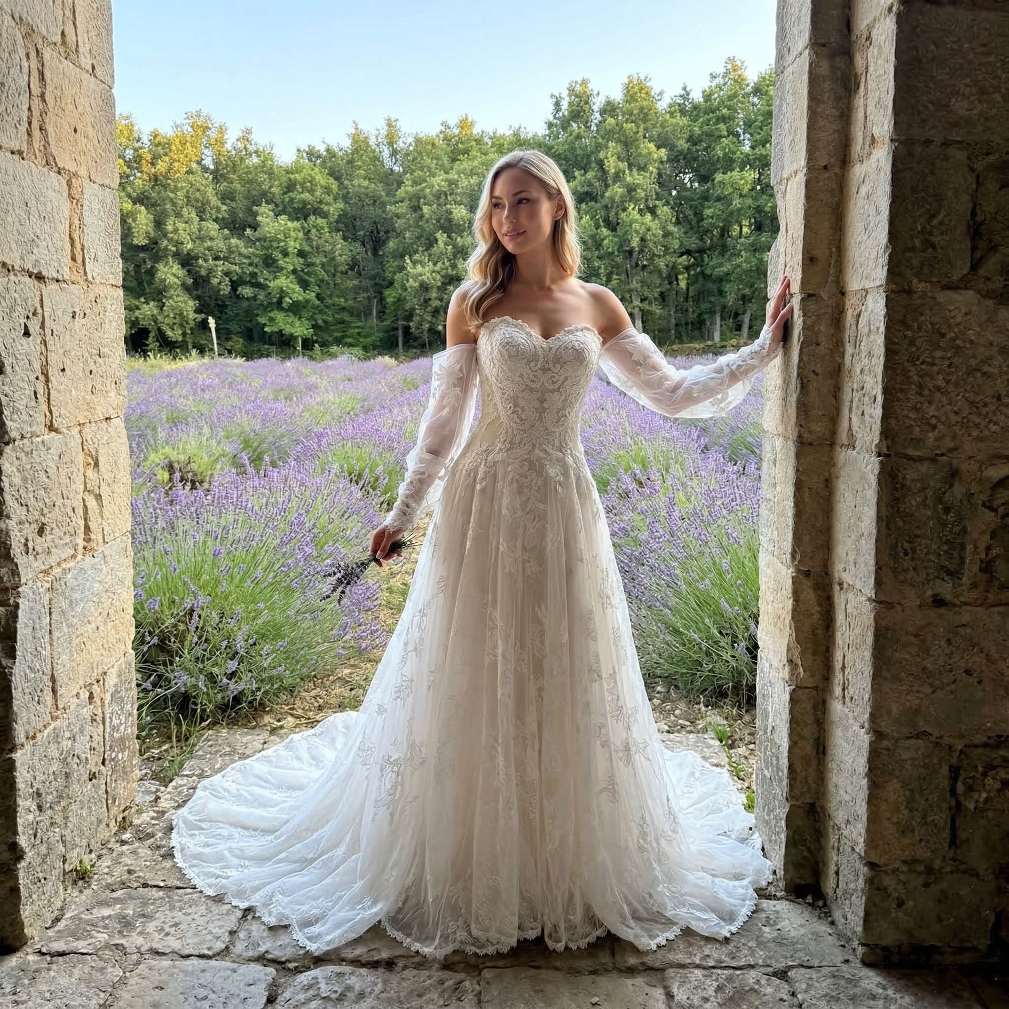 Inspired by French style design, this gown balances sophistication with soft femininity. The structure enhances the figure, making it perfect for brides who want a graceful yet confident appearance.