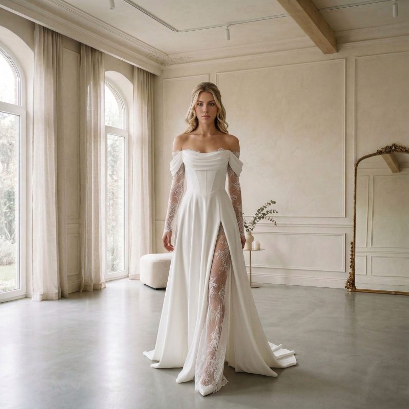 The detachable sleeves allow you to switch styles effortlessly, making it perfect for both ceremony and reception. Designed for brides who want something unique and stylish, this gown balances detail with comfort.